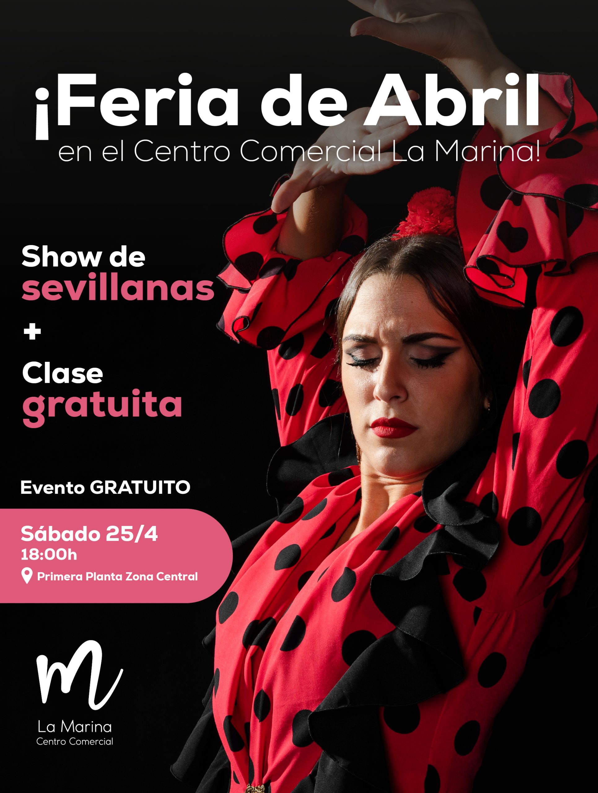 APRIL FAIR IN LA MARINA: You can feel the south, you can dance to it… and this year, you can experience it here too. On Friday 24 April, come and enjoy the purest essence of the April Fair with live flamenco music by Manu Núñez at 6.00 pm. A perfect way to let yourself be carried away by the rhythm, the art and the joy. On Saturday 25 April, the celebrations continue: Live sevillanas show at 6.00 pm. Free class to learn how to dance them.